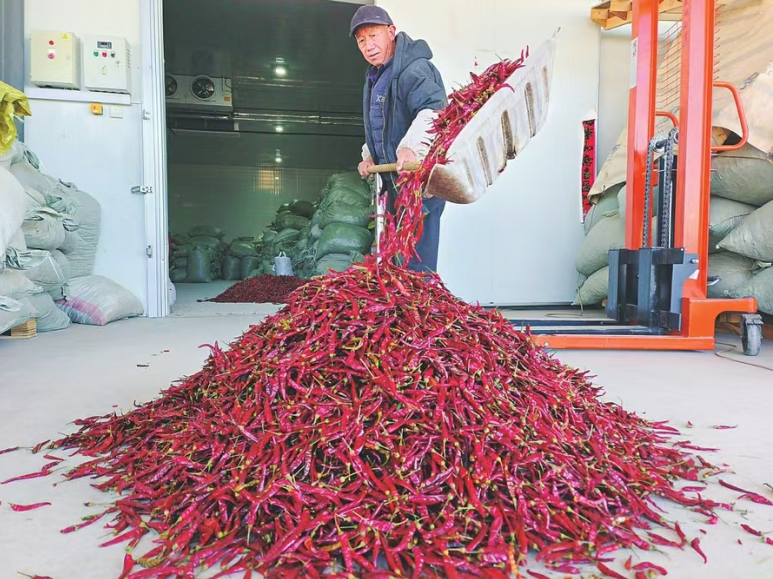 “以前种玉米,一年挣不到4000元,现在辣椒厂打工,7个月就赚了1万6!”村民常聚先的账本,道出了产业变革的真实效益。通过土地流转、务工分红和保底收购协议,全村100余户村民实现“家门口就业”,长期雇佣员工30余人,年人均增收超5000元。村民赵建民种植的2亩辣椒年收入超5000元,红火的日子让他笑称:“辣椒比‘金豆子’还值钱!”在镇党委的推动下,合作社还与周边30余户农户签订订单协议,辐射带动蔬菜种植、冷链物流和深加工一体化发展,形成“种产销一条龙”的产业格局。