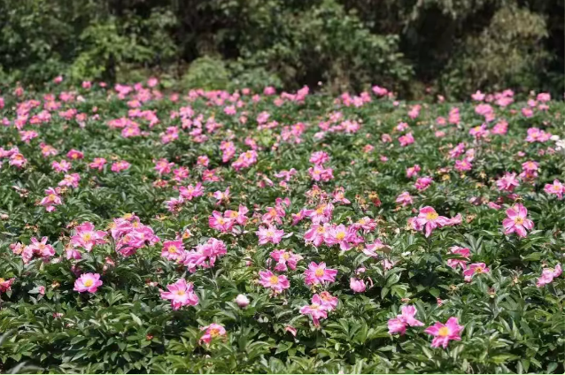 繁花盛放,点亮乡村新貌。四月春风拂过山梁,连翘花率先泼洒出延绵数里的金色地毯;七月盛夏骄阳似火,赤芍花接力绽放如大地升腾的片片红霞。三交村连翘基地以“花时钟”的生态智慧,让五十亩药田变身永不落幕的自然剧场。基地配套推出“春摄金浪·夏赏红云”主题游,沿溪设置露营点,增强游客体验,带动经济发展。