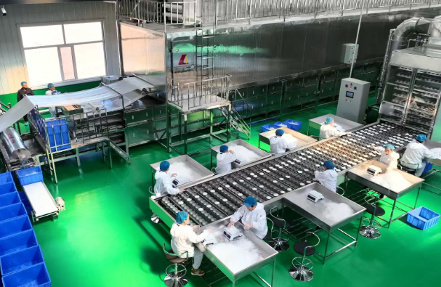 “鱼菜共生”的生产模式不仅绿色而且高效,大棚里安装的智能循环水控制系统和水质检测系统在提高生产效率的同时大大降低了人工成本。2024年,东关南村售出各类水产15万斤,销售收入达到300万元,今年村里还计划继续扩大养殖规模和品类。于建文说,那块试验了龙虾、南美白对虾,还有澳洲龙虾,他们准备在这块,扩建10个养虾池。为进一步壮大集体经济,东关南村在去年开工建设了粉条加工厂,近日,水晶粉条和方便粉丝两条生产线都已安装调试完毕,正式投入生产。在2500平方米的标准化厂房内,机声隆隆,自动化流水线正在高效运转。马铃薯淀粉经过制浆、真空抽气、铺浆、蒸熟、冷却、老化、切条、称重、压模、烘干、包装等十几道工序后,变身成为晶莹剔透的粉丝。