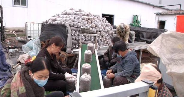 喂马乡河绪村村民江明珍说:“我是河绪村人,在家种完地正好来公司接种,种蘑菇,装袋,离家近,对我们来说很合适,每天挣100块钱,一年下来收入也不少。”