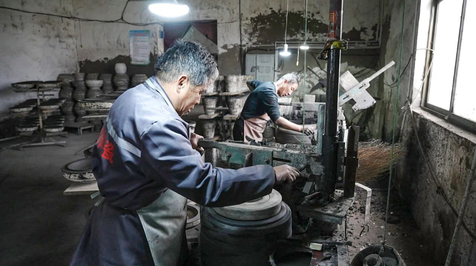 “在这儿打零工已经5年了。每月能挣2000多块钱,还不耽误照顾家里。”正在打磨砂锅的王彩虹笑容满面地向笔者分享着她的喜悦。