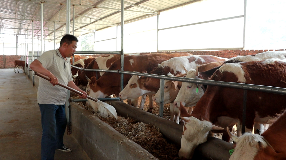 “我的主要任务就是拌料、喂草、添草、清理牛舍、加水,把牛喂好,主要是这个任务,完了老板给的工资也不低,挺好的。”昔阳县三赫农牧有限公司工人张富明说道。