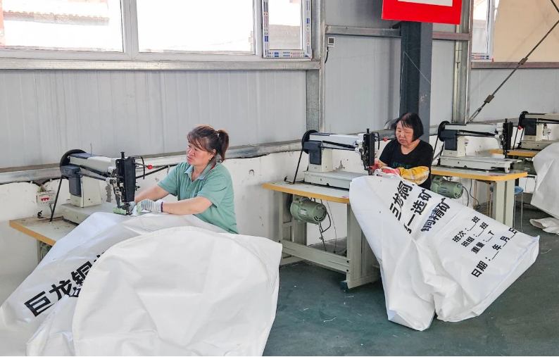 仲夏时节,热浪裹挟着蓬勃生机。走进武乡县大有乡峪口村的吨包生产加工车间,500多平方米的车间里一派繁忙景象。四十多名工人端坐缝纫机前,机针在布料上跳跃出细密的“嗒嗒嗒”节奏。零散料片经巧手拼接,逐渐“生长”为方正敦实的成品吨包。这些柔韧的“工业背囊”,自重不过数公斤,却能稳稳承载一吨原料,成为现代物流链条上不可或缺的坚实一环。