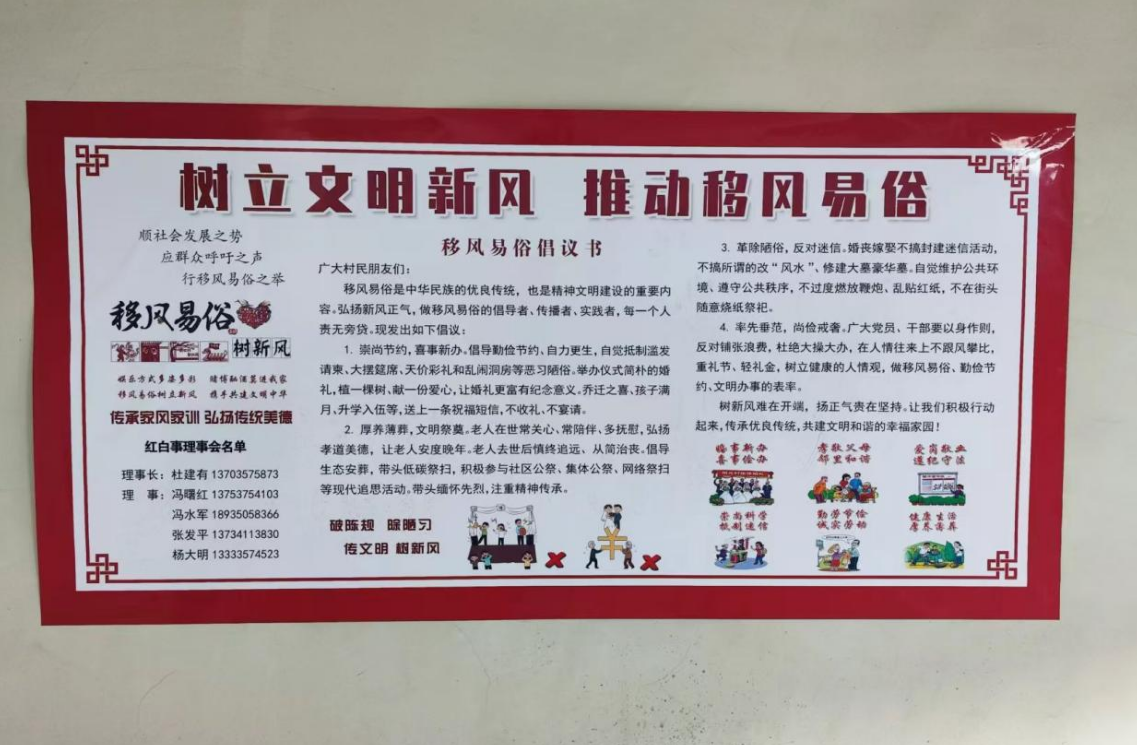 党员先锋带头:要求党员干部、各类评优评先人员签订移风易俗承诺书,遇红白事必先报备理事会,带头执行新规,为村民树标杆。