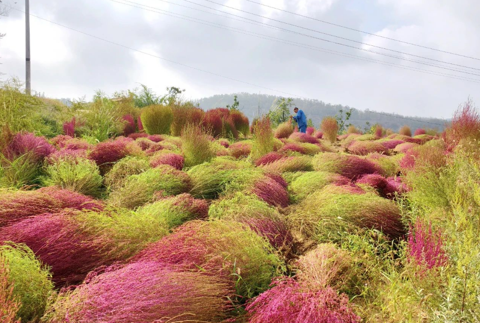 山西新闻网三农频道讯 金秋时节,武乡县大有乡脉落神村的扫帚苗迎来丰收,村民们抢抓农时进行收割、搬运,一团团、一簇簇红彤彤的扫帚苗漫山遍野,红绿相间的景致透出山村别样的美,形成秋日里一道靓丽的风景线。 扫帚苗学名地肤,又名孔雀草,株型紧凑,枝多叶密,是一种耐旱耐活,集食用、药用、经济与观赏为一体的植物,长成了的扫帚苗有一米来高,天然的蓬松感是制作扫帚的好材料。