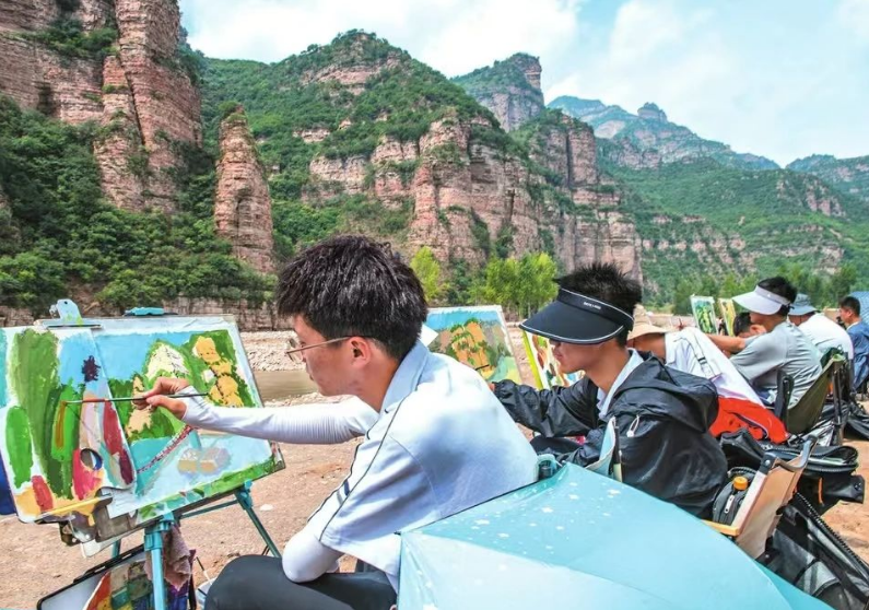 山西新闻网三农频道讯 近日,来自河北石家庄、山西太原等地的美院师生在左权县中国北方国际写生基地泽城片区写生创作,一幅幅“诗和远方”的人间烟火新图景,为乡村振兴注入了源头活水。中国北方国际写生基地依托太行山水,以“画”为媒,打造“山水—写生—消费—产业”全链条发展的新图景,将左权最优良的自然资源和红色文化通过艺术的形式引爆,打造出左权崭新的艺术文旅名片。