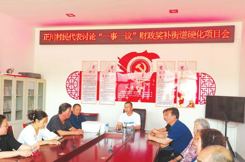 黎城县西仵镇正川村村民代表在讨论“一事一议”财政奖补街道硬化项目事宜。本报通讯员 摄 黎城县上遥镇靳曲村用“一事一议”财政奖补资金硬化街巷。