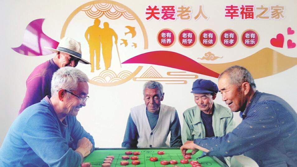 老人们正在李家沟村的日间照料中心下棋。 “老哥,孙子啥时候回来呀?”“快了快了,等到下个星期一放假就回来了。