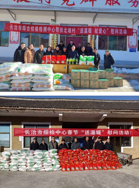 山西新闻网三农频道讯 新春将至,岁寒情深。为把新春问候和祝福及时送到困难群众身边,进一步巩固脱贫攻坚成果,怀揣着对帮扶村群众的牵挂,1月23日,长治市综合检验检测中心班子成员、中心部分党员干部赴对口帮扶村黎城县北坡村和东骆驼村开展2024年春节走访慰问及“送温暖、献爱心”活动,为两村337户村民送去慰问品,为帮扶群众送去党和政府的关怀和温暖。