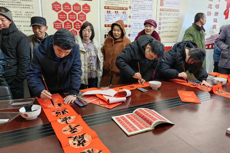 山西新闻网三农频道讯 1月22日,石楼县疾控中心组织党员干部赴帮扶村灵泉镇郭村开展“宣传贯彻县委八次全会精神,移风易俗迎新春送春联”主题党日暨文明实践志愿服务活动,特邀石楼中学闫世平等老师现场为广大村民写春联、送“福”字,将节日的祝福与浓浓的年味送到老百姓身边。 活动现场,充满新春气息的红纸铺满桌面,书法老师们凝神静心、挥毫泼墨,龙飞凤舞间一个个寓意吉祥的“福”字,一幅幅寓意喜庆、满载祝福的春联跃然纸上。