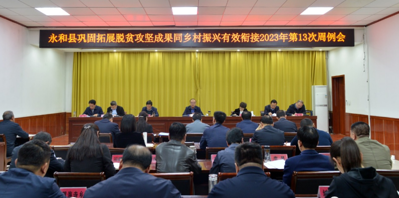 山西新闻网三农频道讯 11月2日,永和县委书记高永贤主持召开永和县巩固拓展脱贫攻坚成果同乡村振兴有效衔接2023年第13次周例会并讲话。他强调,要持续深入学习贯彻党的二十大精神,全面落实省市部署要求,乘势而上、一鼓作气,全面推动巩固衔接各类问题清仓见底,各项工作整体提升,用实际工作成果检验主题教育成效。