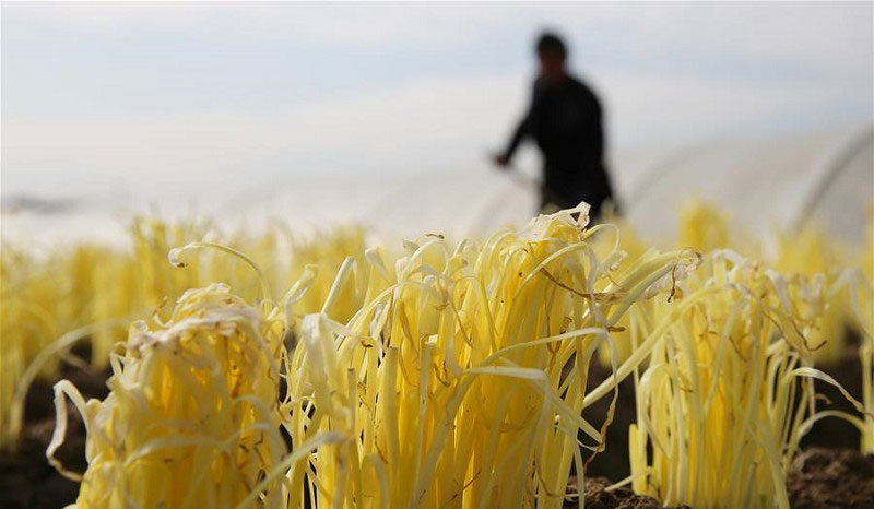 于洋正在采收羊肚菌。 近日,在山东青岛莱西市马连庄镇,金色河崖农产品专业合作社的温室大棚内,80后小伙于洋正忙着采收他的“稀罕物”——羊肚菌。