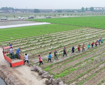 连日来,四川省眉山市东坡区岷江现代农业园区农民抢抓有利天气,抓紧开展水稻机械插秧工作,确保抓疫情防控的同时不误农时,为今年粮食丰收打下坚实基础。图为东坡区农民正在水稻育秧田里将用于机插秧的秧苗装车。