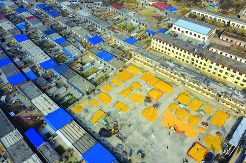 近日,吕梁市各地农民抢抓晴好天气,晾晒稻谷、玉米等农作物,村落庭院、晒场路边到处呈现出一幅幅美丽的“晒秋图”。图为临县城庄镇城庄村晒秋场景。