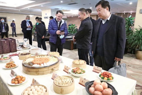 论坛现场展示的琳琅满目的“岚县土豆宴”美食。 日前,由中国科协定点扶贫领导小组办公室主办、山西省岚县人民政府和北京中农服农业科技有限公司承办、中国农业科技下乡专家团和中国老教授协会农业专业委员会等合办的“2020中国马铃薯产业发展高峰论坛”在北京举行。