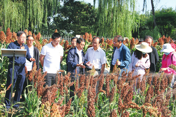 近年来,山西农业大学(省农科院)高粱研究所主动适应市场需求,加大酿酒、酿醋专用高粱品种的选育,先后培育出晋杂22号、晋糯3号等优良酿造适用品种。图为9月18日,来自全国各地的高粱领域专家学者在修文试验基地对谷子高粱国家登记品种进行观摩考察。