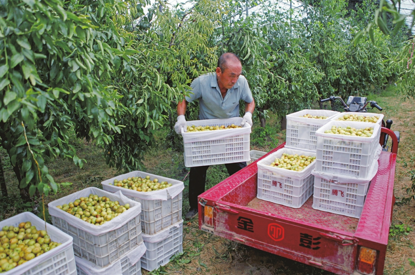 9月10日,襄汾县邓庄镇席村冬枣种植基地内,种植户正在开展采收作业。近年来,邓庄镇大力发展特色农业种植产业,通过实施科学化种植和水肥一体化管理,使冬枣的产量、质量、规模得到显著提升。