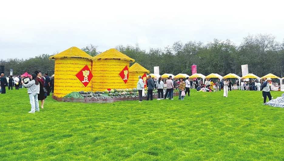 台上欢歌快舞庆丰收,台下热热闹闹逛大集。产品展销现场,人头攒动、热闹非凡,游客品尝丰收美食、体验丰收喜悦。售卖农产品的农民嗓门大、笑容甜:“郊区西南舁的苹果,嘎啦脆,您尝尝!”“平定的黄瓜干,好吃,有嚼劲!”“今天刚从地里摘的老南瓜,又糯又甜!”“家里走地鸡下的蛋,特别香!”