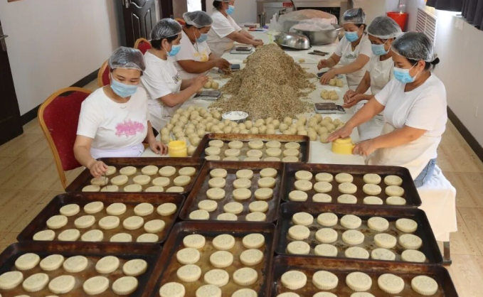 “李氏月饼”的价值,早已超越美食本身——它既是非遗的鲜活载体,更是带动地方发展的“富民产业”。每年中秋节前50天的生产黄金期,基地可产出约3.5万公斤月饼,其间能消化当地小麦1.5万公斤、芝麻0.6万公斤,有效激活了农产品销售链条;同时,基地为40余名农村妇女提供了稳定就业岗位,让她们实现“家门口增收”;更辐射带动周边50多户农民参与农产品种植与深加工,帮助农户走上致富路,为乡村振兴注入强劲动能。
