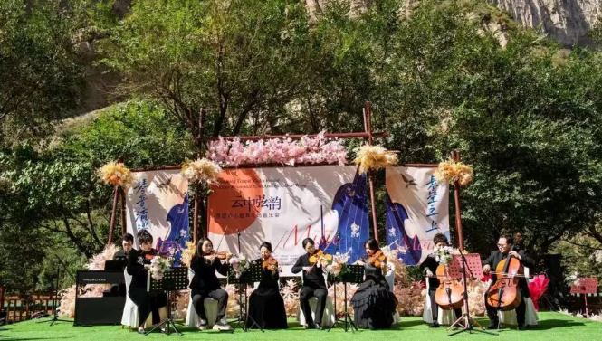 当天一早,悬空寺景区便回荡着悠扬弦音,国内首次在悬空寺举办的“云中弦韵——小提琴专场音乐会”在此奏响。音乐会以“琴鸣悬空寺,听奇险古建,品三教梵音”为主题,在千年古建的飞檐峭壁间,通过“四大篇章12首曲目”串联古今:《茉莉花》的熟悉旋律点燃全场氛围,《彩云追月》的弦乐交织勾勒“古寺悬云端”的意境,《梁祝》西洋重奏则让经典爱情故事与古寺的坚守共振,让观众在视听交融中感受三教合一的包容与丝路文明的璀璨。