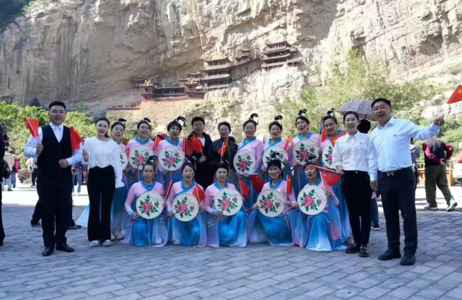 “歌唱祖国”快闪活动在恒山游客中心激情上演。悠扬的旋律与嘹亮的歌声交织,来自五湖四海的游客与演出人员共同挥舞国旗,以真挚的热情和动人的歌声,为祖国母亲献上最诚挚的祝福。