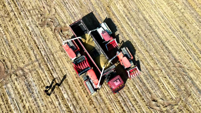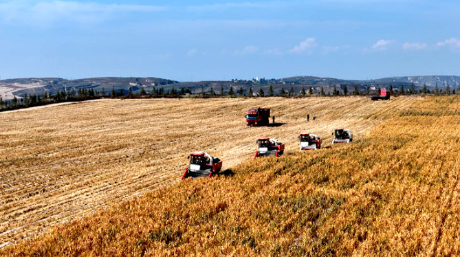 在种植前期,北斗系统已深度介入生产流程,施肥拖拉机依托北斗定位实现厘米级直线行走,精准控制播撒量,同步降低成本与污染;播种时与精量播种机智能联动,确保行距均匀,土地利用率提升5%。秋收作为成果检验的关键环节,公司投入的4台联合收割机配合新型杂粮收割台,在北斗导航引导下高效运转——以往需1个月的收割任务,如今10天即可完成。得益于前期均匀的行距设计,收割机得以快速推进,赶在近期雨天来临前实现颗粒归仓,机收损失率明显下降。