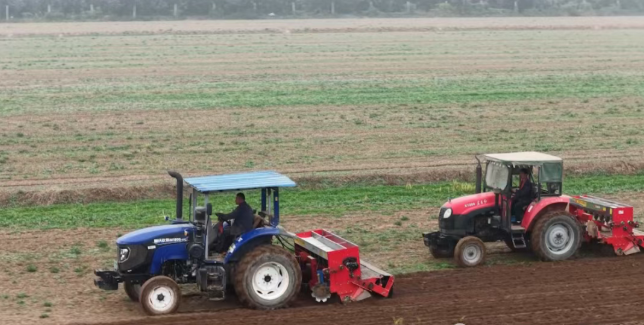 眼下正值冬小麦播种时节,在翼城县南唐乡北唐村的小麦种植基地,两台施肥旋耕播种一体机来回穿梭,伴随着机器的轰鸣声,一行行整齐的麦种被精准播入土壤,为来年的粮食丰产筑牢根基,高效播种的农事画卷在沃野之上徐徐展开。