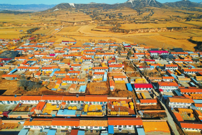 11月13日,盂县东梁乡阳坪望村,错落的民居与庭院里晾晒的玉米构成了一幅金色的“晒粮图”。近年来,东梁乡积极落实惠农政策,推广科学种植技术,为粮食丰产打下了坚实基础。