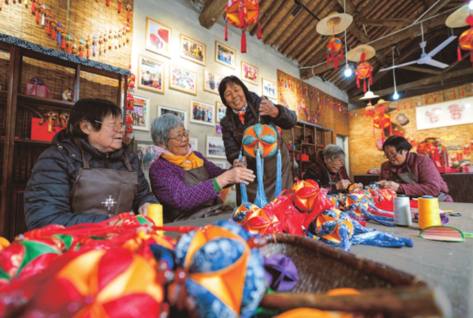 11月22日,襄汾县赵康村的妇女们在合作社里飞针走线,变“农闲”为“农忙”,赶制一批太平绣球订单。合作社自成立以来,已带动60余名村民在家门口实现就业。