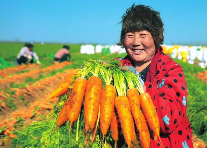 12月8日,襄汾县汾城镇南膏腴村田间,农户们抓紧采收胡萝卜。近年来,襄汾县引导村民通过土地流转扩大果蔬种植规模,大力发展特色农业,助力乡村产业振兴。
