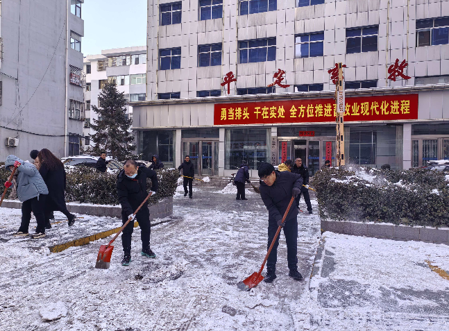 近日,受冷空气影响,平定出现降雪降温天气,气象台连续发布暴雪预警和道路结冰预警,路面形成大量积雪。为保障群众出行安全,响应市、县“清雪除冰倡议”,12月13日,平定县畜牧业发展中心全体党员干部利用休息日,开展了“以雪为令、向冰而行”清雪除冰志愿活动。