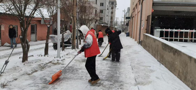 12月12日,榆次区迎来今冬首场大雪,为了保障居民的出行安全,榆次区新华街道榆和东社区组织开展了清雪活动,社区干部、志愿者积极投身到清除冰雪行动中,用实际行动为居民出行尽一份责任,献一份爱心。
