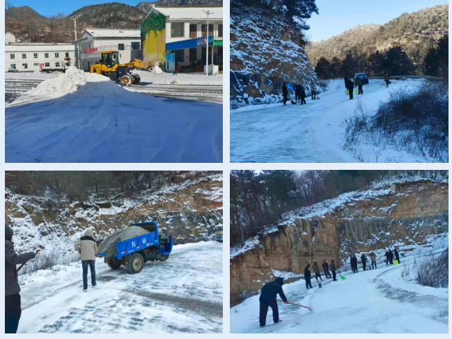在乡内主干道、村庄广场等重点区域,干部群众手持铁锹、雪推板等工具,分工协作清理积雪;铲车等机械车辆则在主干道来回作业,高效推雪除冰,“人工+机械”的模式让清雪效率大幅提升。从蜿蜒的山区公路到便民的乡间小道,随处可见干群挥铲扫雪的身影,大家不畏严寒,齐心协力打通一条条“安全通道”。