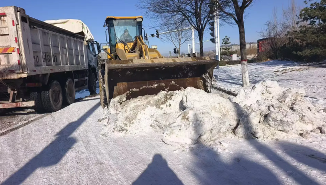 指令下达后,清雪作业迅速铺开。环卫中心累计出动环卫工人650余名,调配铲车1台、清运车2台、垃圾车6辆,采取“人机协同、分区作战”的科学模式提升作业效率。机械车辆化身“清雪先锋”,在主干道路上来回穿梭,快速完成积雪推铲与集中归集;环卫工人则聚焦“最后一米”,对十字路口、学校道口、公交站点等人员密集区域进行精细化清扫,确保无积雪残留、无结冰隐患。全体作业人员24小时在岗值守、连续奋战,用脚步丈量责任,用扫帚守护平安。