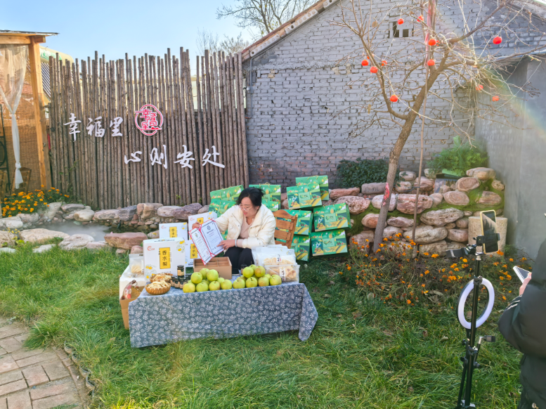 如果说精致的体验留住了游客的脚步,那么火热的直播带货则让幸福庄乃至黎城的特色产品,飞出了农家小院,走向了更广阔的市场。小院专门开辟了直播空间,成为了一个天然的“乡村直播间”。