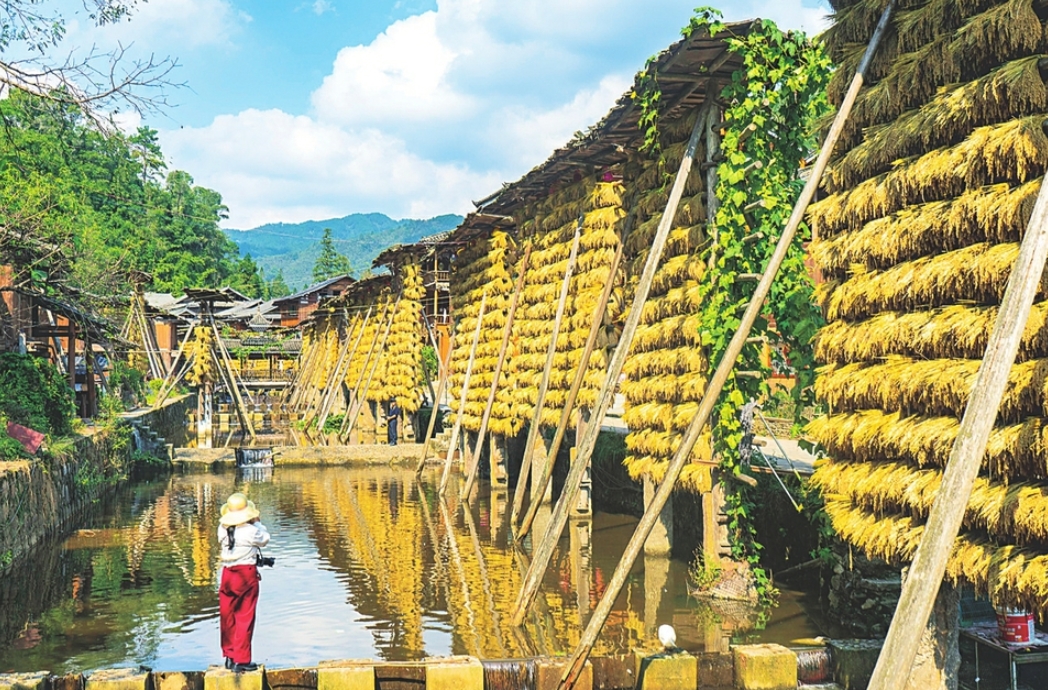 贵州省从江县高增乡占里村禾晾景观。新华社发(吴德军摄)