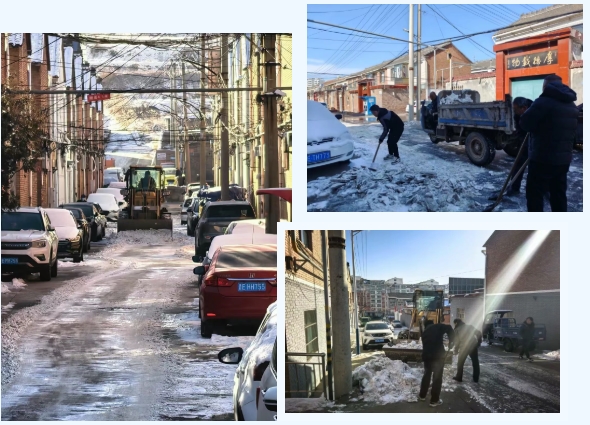 镜头下,各社区清雪现场一派繁忙景象:铁锹起落铲破冰层,众人俯身合力清运,背街小巷积雪开展拉网式清理;三轮车穿梭作业转运零散积雪,拉雪橇分批集中清运,铲车则重点突破厚冰堆雪路段,全力清除通行障碍。“人力+机械”协同作战、高效联动,让一条条小巷逐渐褪去“银装”,迅速恢复了整洁通畅的通行面貌。