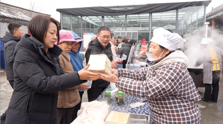 “年味满安泽 民俗乐万家”传统民俗体验活动吸引众多游客和群众参与,手工豆腐制作现场,村民点卤、压制,体验传统美食的制作工艺。熬制腊八粥现场,村民与游客围炉协作,在热气腾腾的烟火气里感受“腊月忙年”的传统韵味,欢声笑语中透着浓浓的团圆温情。