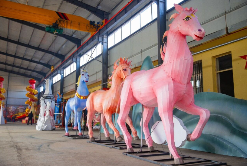 “我们紧扣马年主题,主打八骏马图系列花灯。在坚守传统技法的同时融入国潮元素,让老灯艺接上年轻群体的审美脉络。”李俊先一边俯身指导村民调试灯体装饰,一边介绍创作思路。