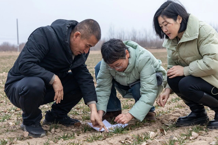 在善福镇赵家烟村,成片冬小麦铺满沃野。农技人员俯身察看麦苗根系发育、土壤墒情,结合不同地块麦苗长势精准制定管护方案,指导农户采取镇压保墒、科学追肥等措施,助力麦苗稳健越冬。
