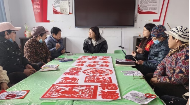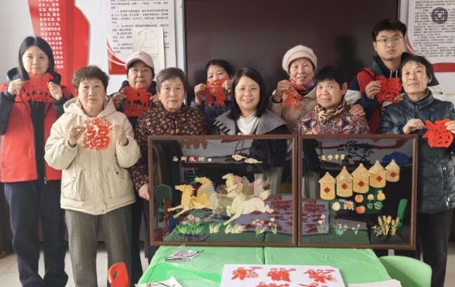 在这里,一把剪刀裁出千年技艺,一束麦秸编织万家愿景。省级非物质文化遗产代表性传承人张亮亮手把手传授折纸、运剪核心技巧,并以马年元素为核心,引导爱好者创作“福”“马”“春”等剪纸图案,同时还加入“扫黄打非”元素。在另一侧,众人正合力为马年新春制作栩栩如生的“八骏图”“五谷丰图”等麦秸画作品,手指捻动间,麦秸被悉心拼贴、巧妙固定。每一次细致的勾勒,每一剪精准的雕琢,不仅展现出传统民俗手工技艺跨越时空的独特魅力与蓬勃生机,更是将新年的美好期盼和真诚感悟编织进每一丝纹理之中。