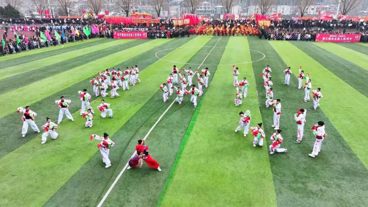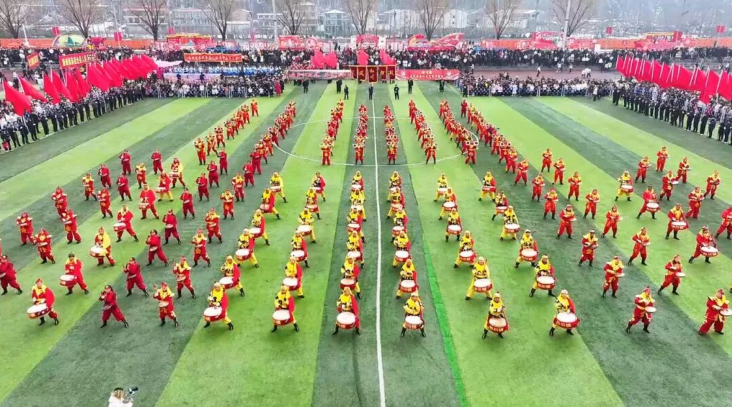 上午10时,社火展演在县文体广场正式开始。安泽二中威风锣鼓队率先登场,百余名少年如万马奔腾,用激扬的鼓点敲响新春序章。他们气势磅礴、动作整齐,激越的锣鼓声,不仅敲出了安泽学子的蓬勃朝气,更敲响了马年奋发的昂扬斗志,以铿锵鼓点为全县人民送上新春的祝福。